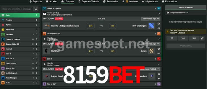 O 8159bet oferece uma grande seleção de opções de apostas em e-sports com probabilidades competitivas
